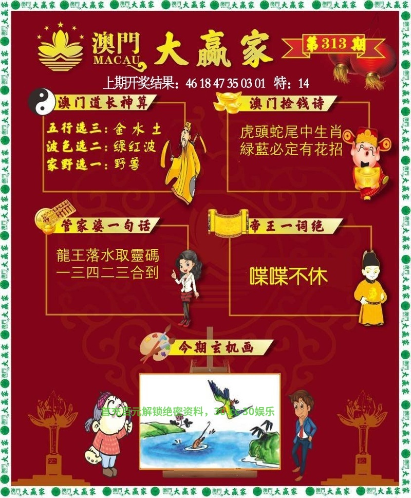 一句赢钱:虎頭蛇尾中生肖緑藍必定有花招,龍王落水取靈碼一三四二三合到
