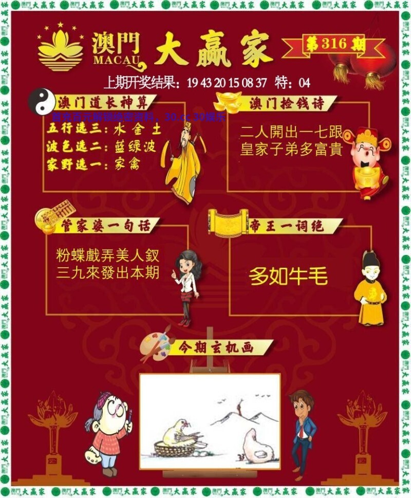 315期前后两肖【前肖+鸡羊】开:虎04中